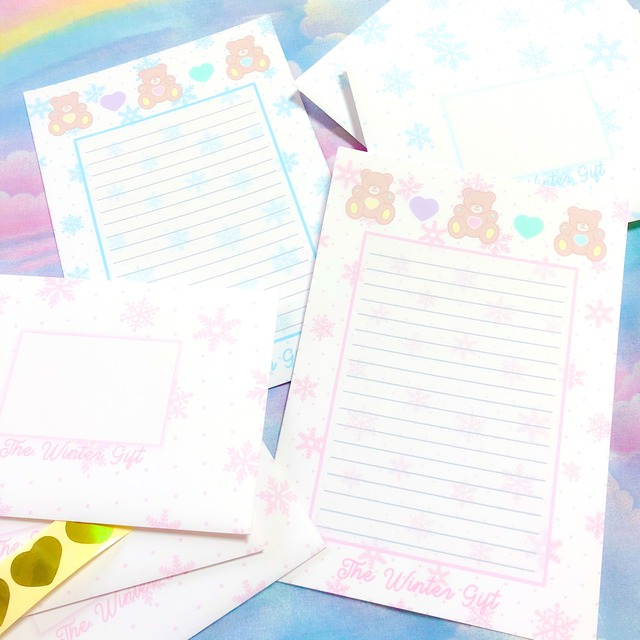 The Winter Giftシリーズから にゅーカラーなレターセットです♡ ホワイトベースにそれぞれミルキーブルーの雪柄とピンクの雪柄を合わせました☆彡 (こちらはレターセットのみでの展開になります) セットとはまた違うカラーでかわいいです♡☆ ピンクかミルキーブルーからお選びください(^.^) ☆セット内容☆ 便箋6枚・封筒3つ・シール3枚 (封筒サイズ 洋2型) マット紙 なるべく肉眼でみるカラーに近づけておりますが、ご使用のモニターによって違うカラーに見える場合がございます。 すべてハンドメイドでの製作になります。 紙にもともとある黒い点のようなものがある場合がございます。 故意につけたものではありませんので、ご了承くださいませ。 カットや封筒も手作業になりますので、完璧なお品物をお求めの方はお控えくださいませ。