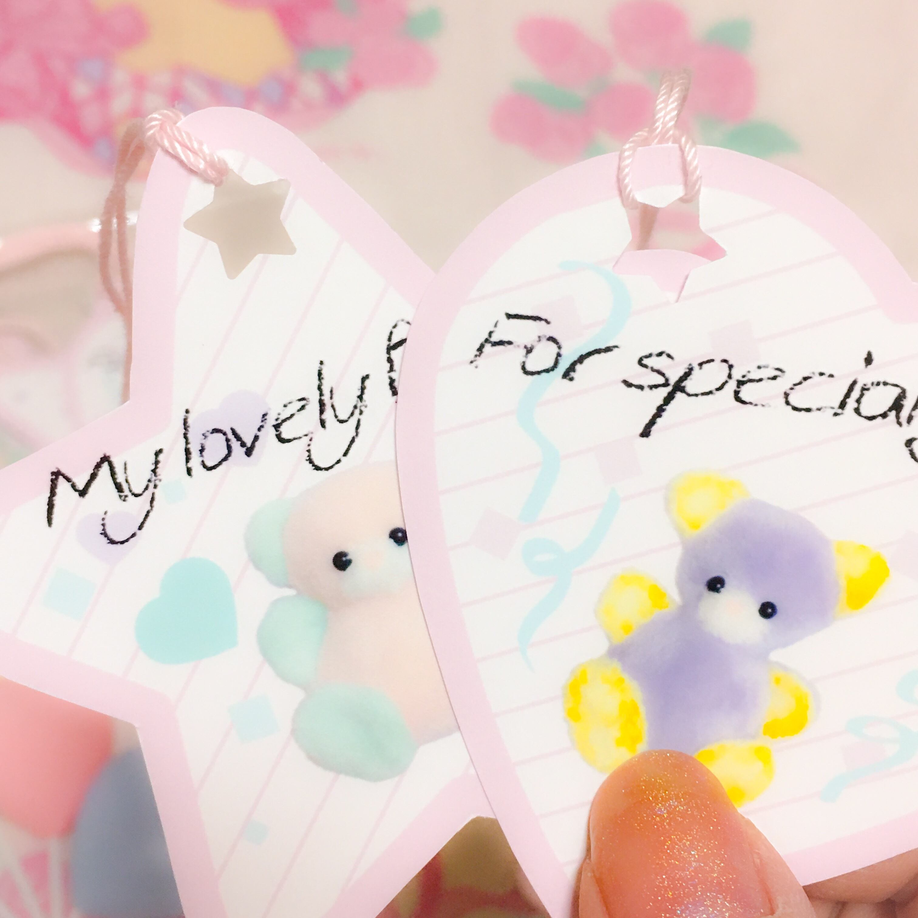 ひもをつけているので、シールでぺたっとしてもかわいいし、ひもは外してプレゼントの中にそっと入れても◎
