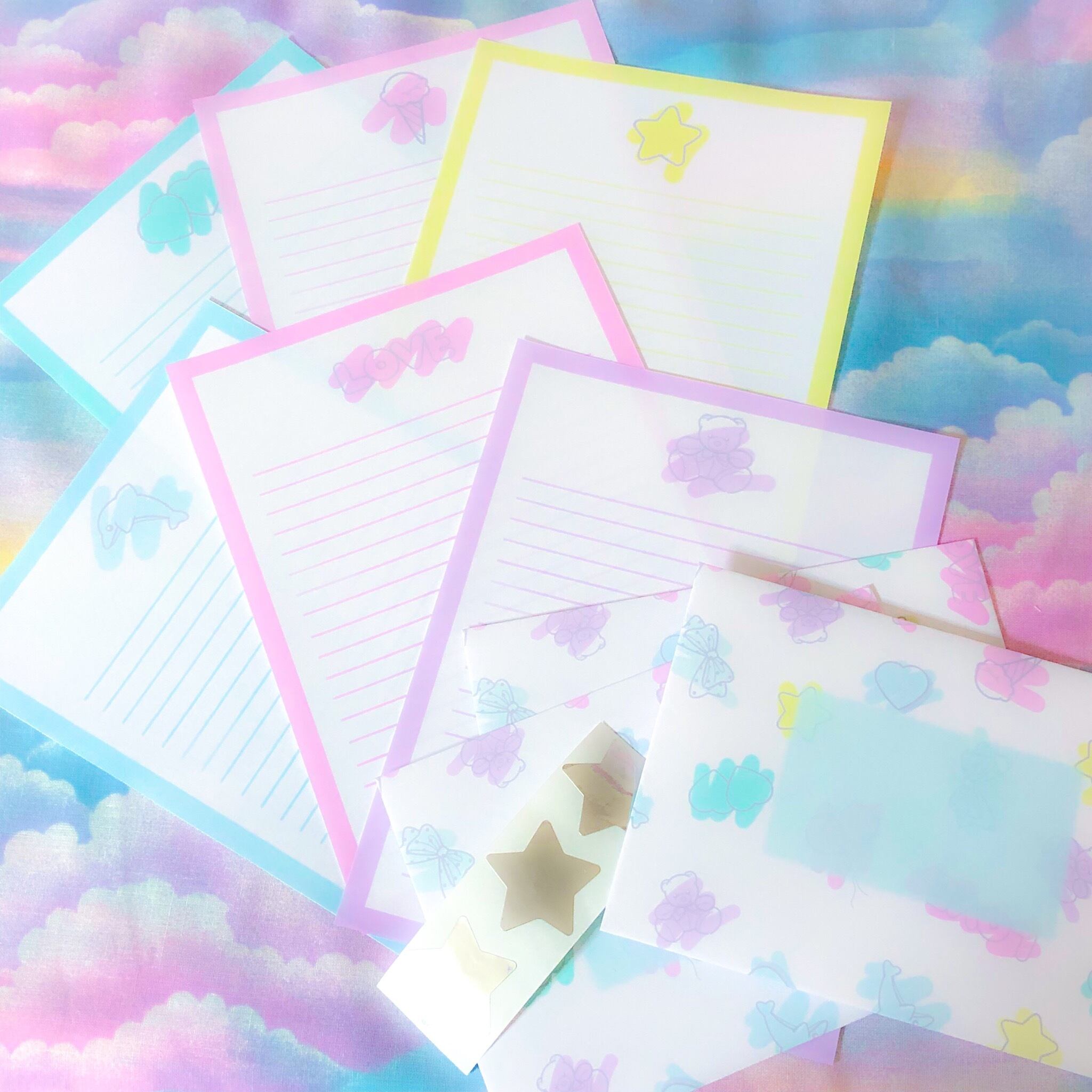 ・便箋6枚・封筒・3つ・シール3つ