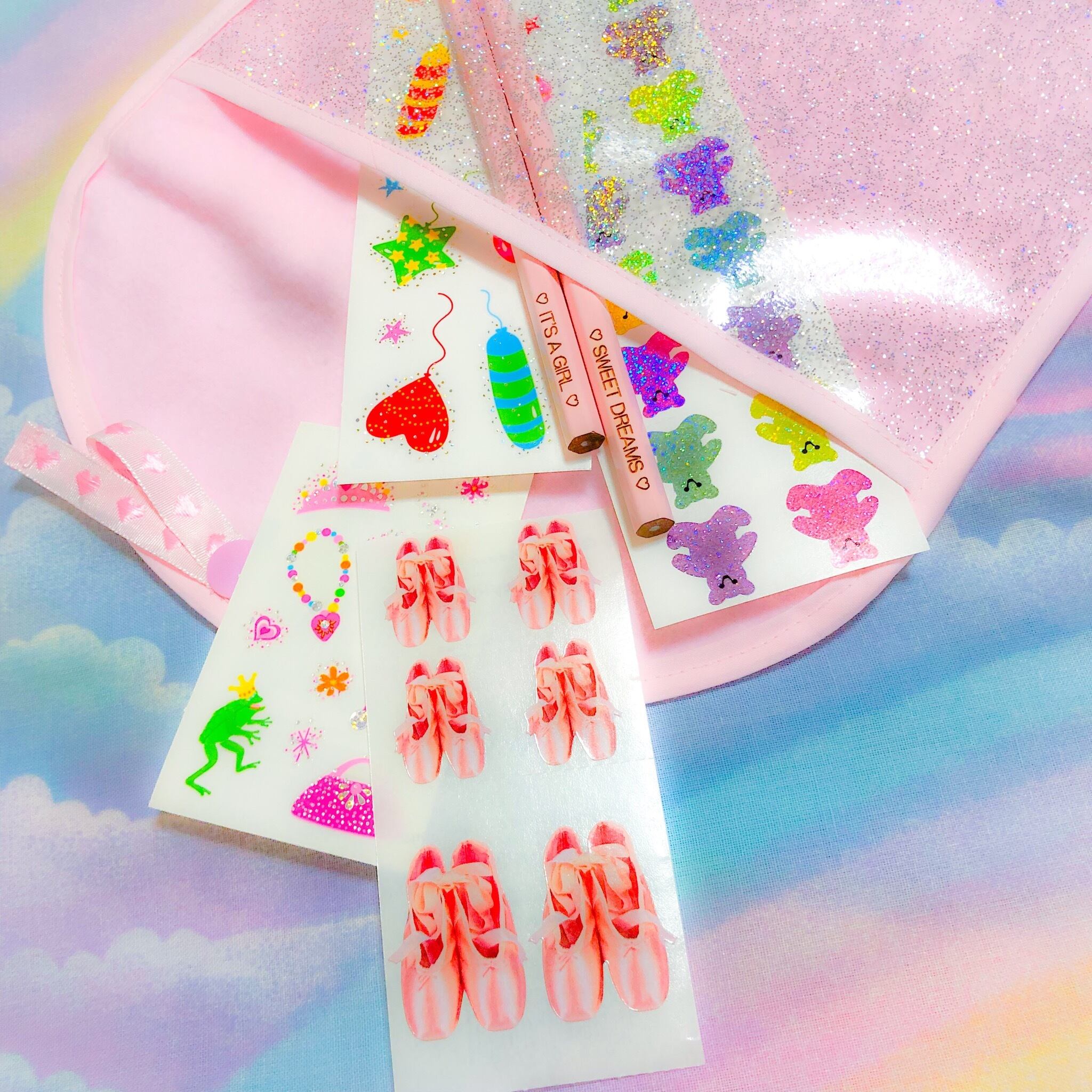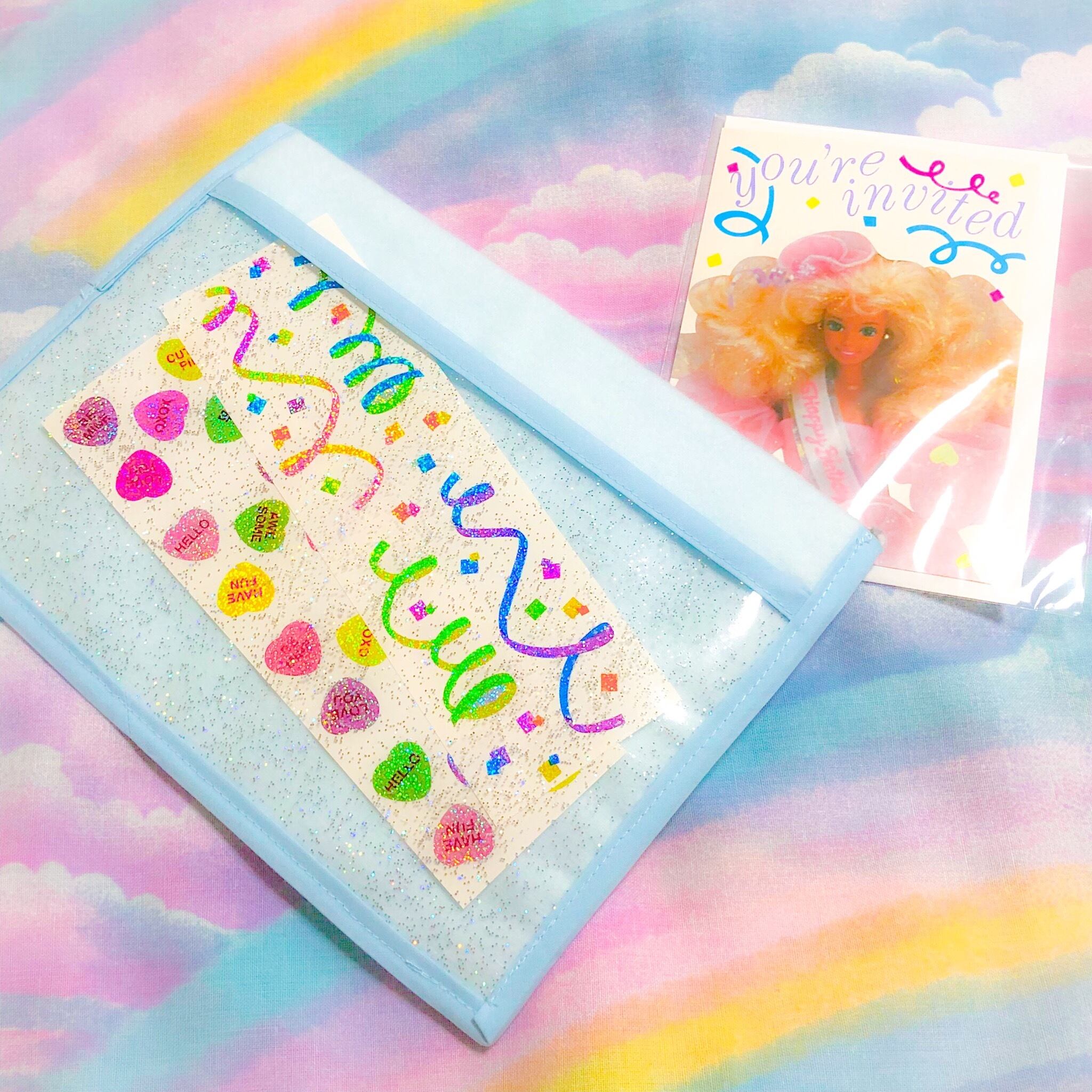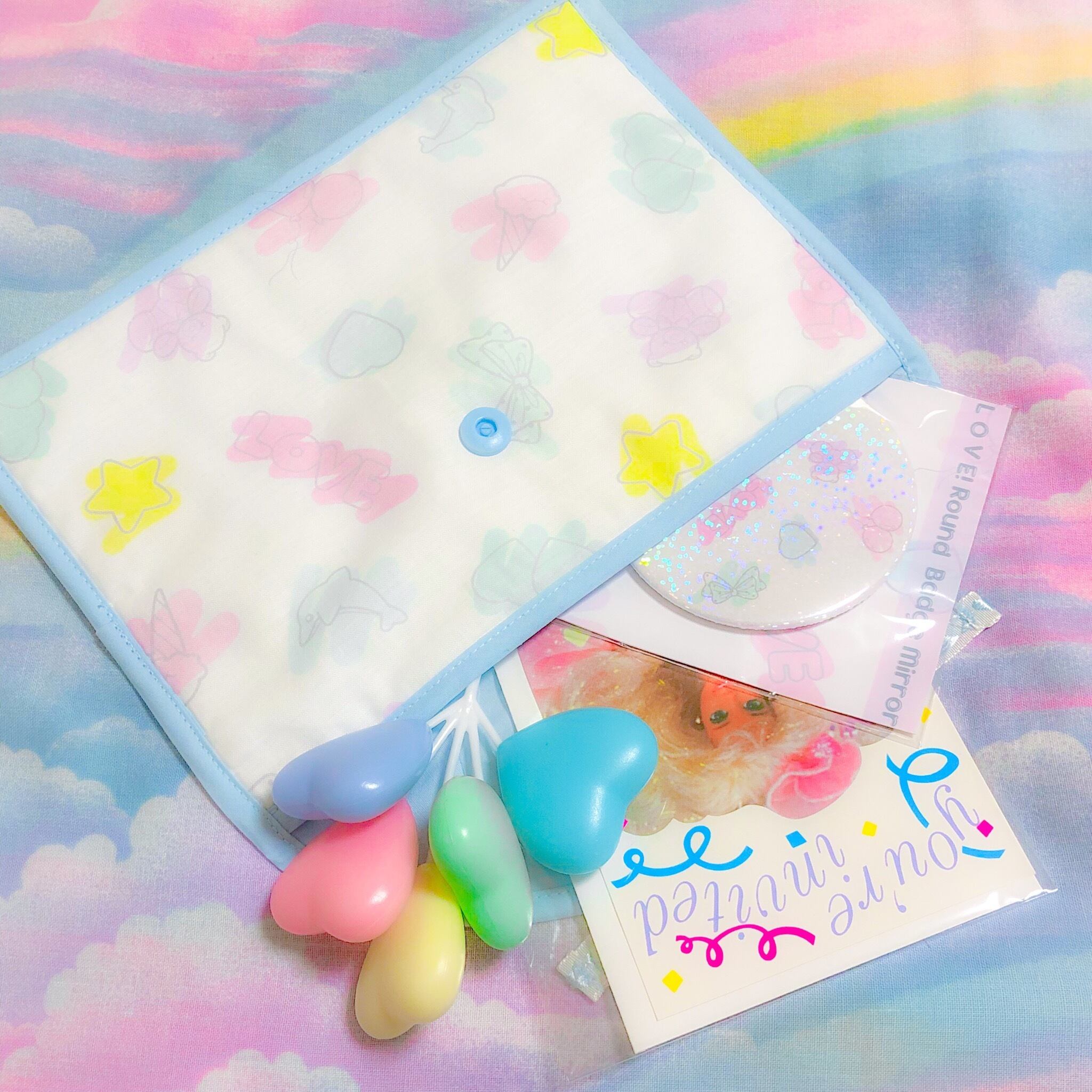中にちいさめのノートとかペンとかマステなんかつめて…後ろのきらきらポケットにはお気に入りのシールをいれて、