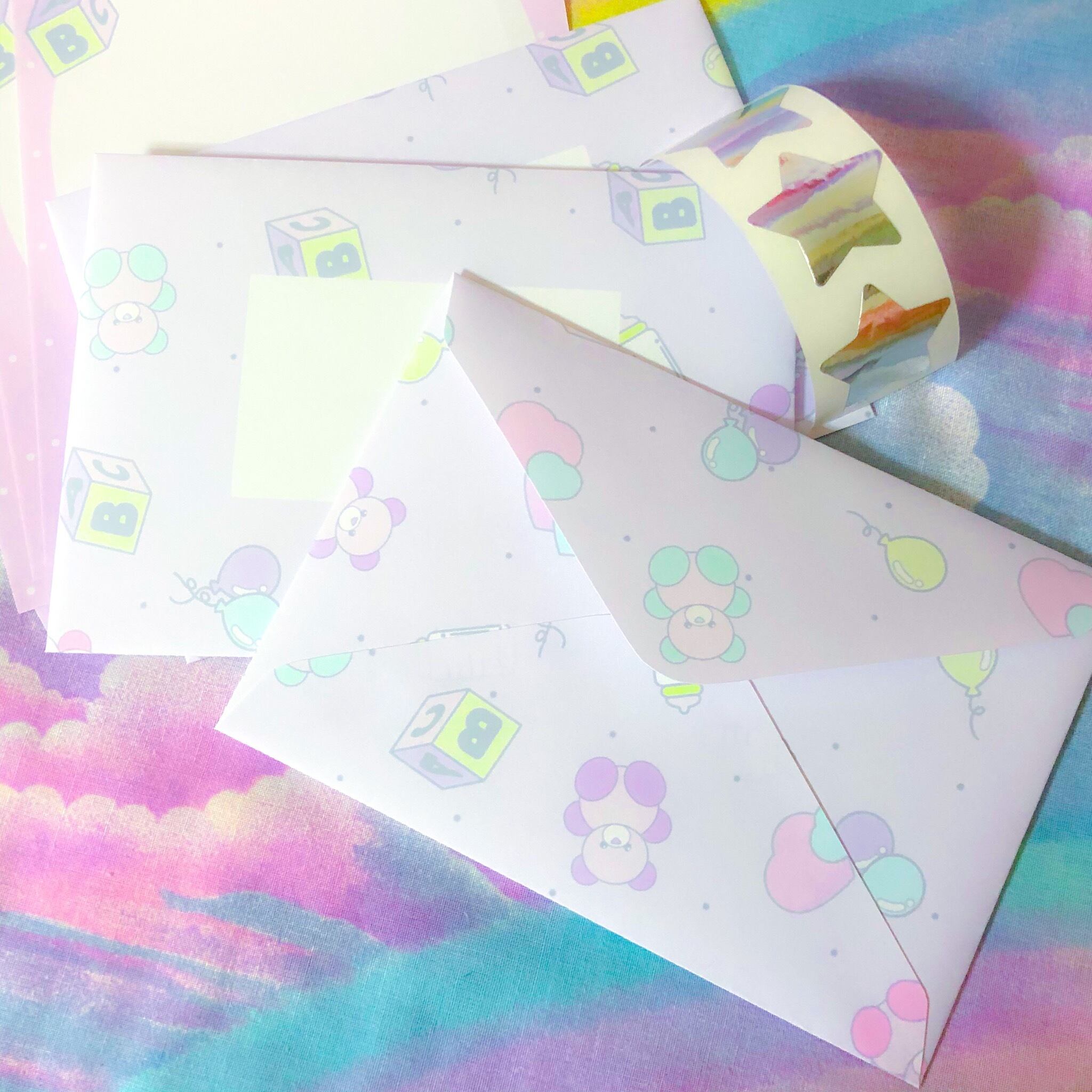セット内容☆便箋6枚 封筒3つ シール3つ