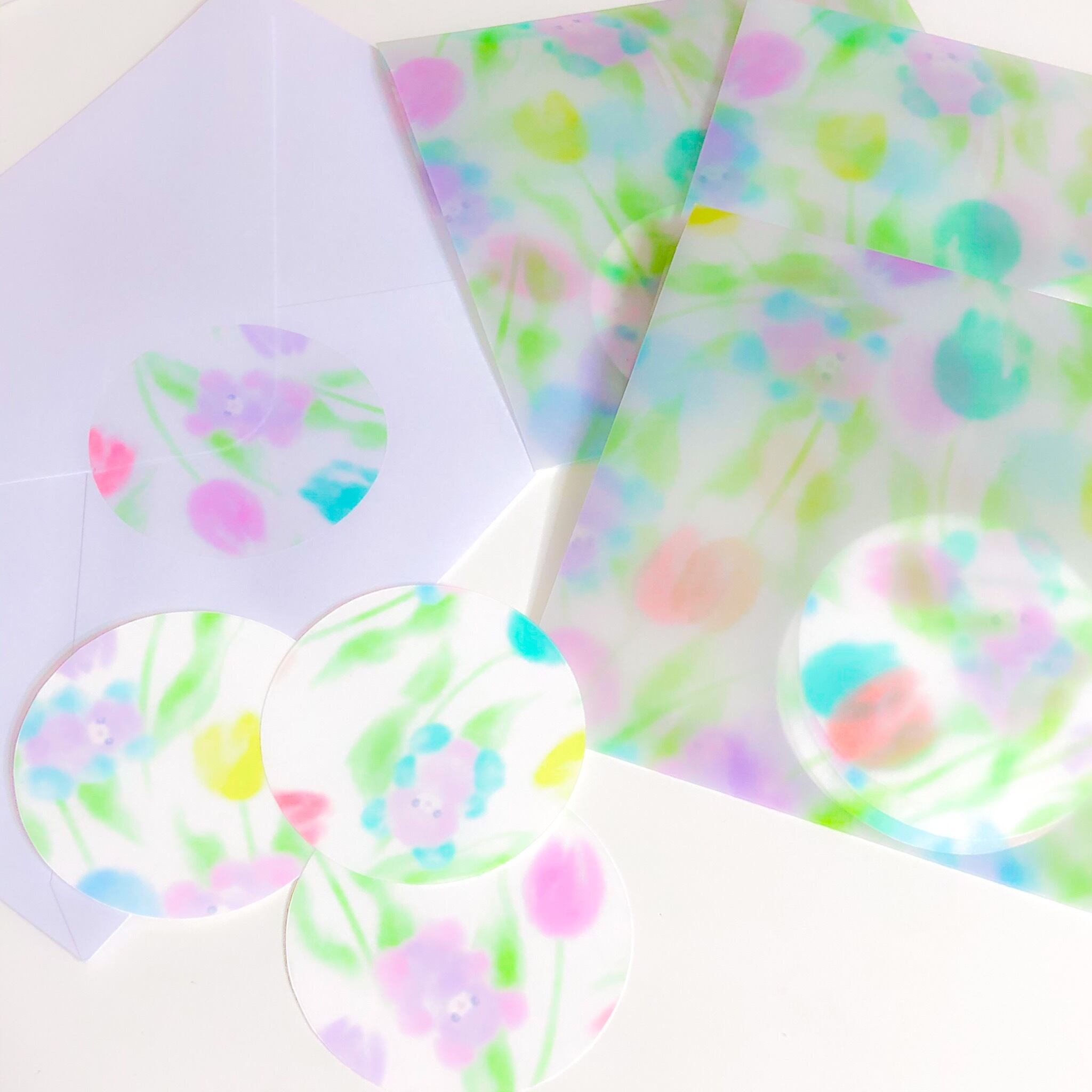 画像4枚目の封筒に貼ってみた図ですが、上蓋の部分はこすっているので密着しています☆