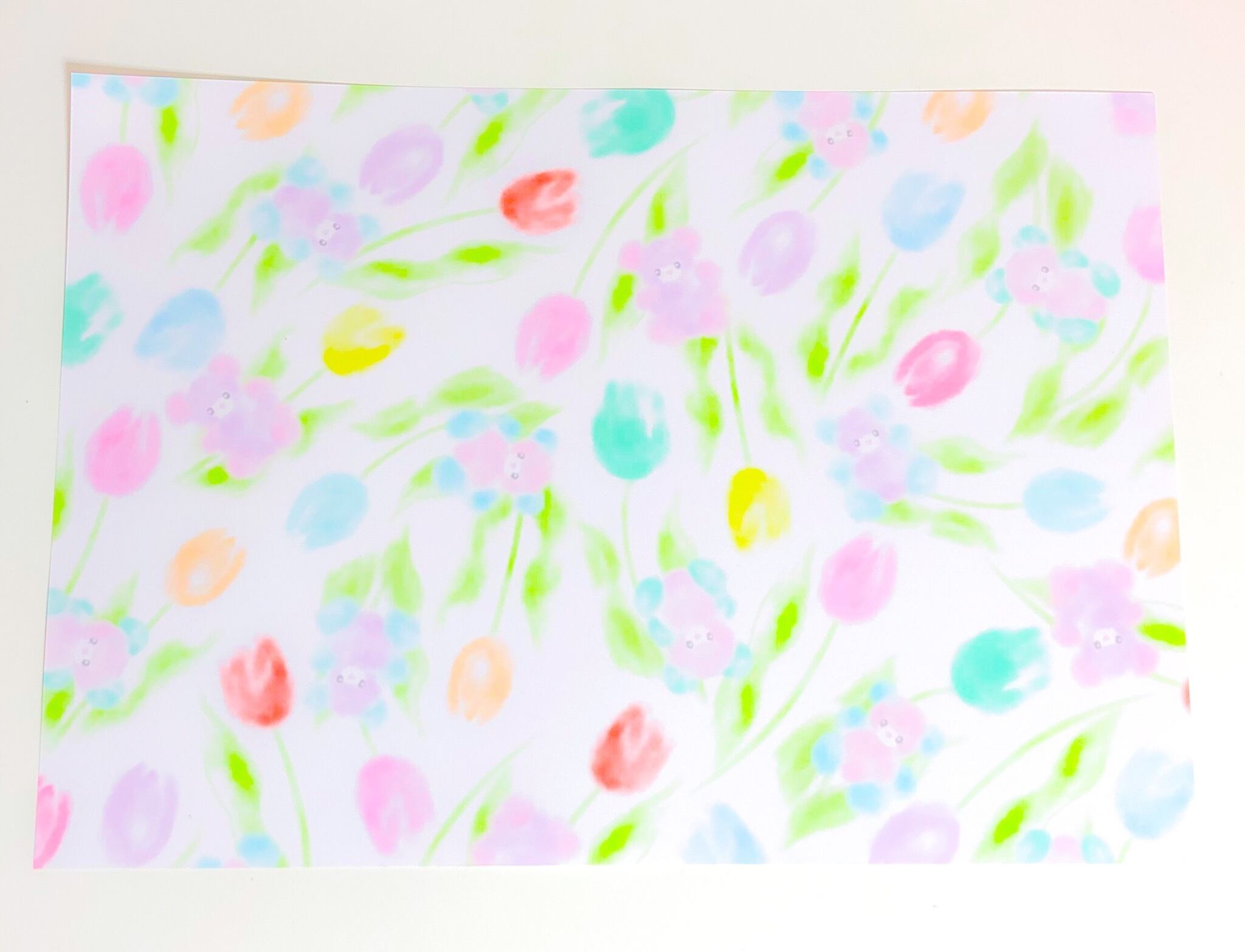 やさしい春のお花とくまさんをふわふわと水彩画で描いた Hello, Springシリーズ