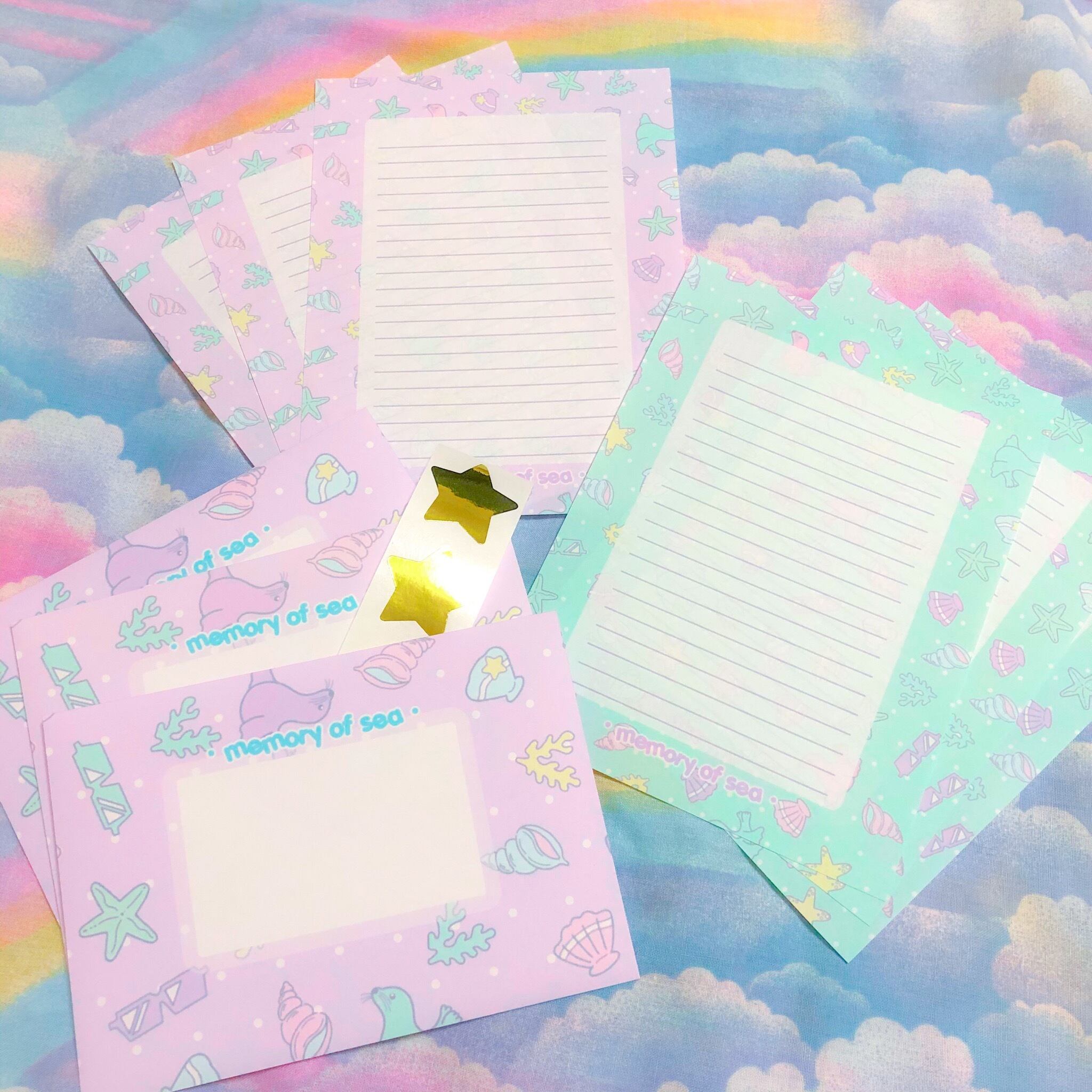封筒3つ・便箋6枚(各色3枚)・シール3つ