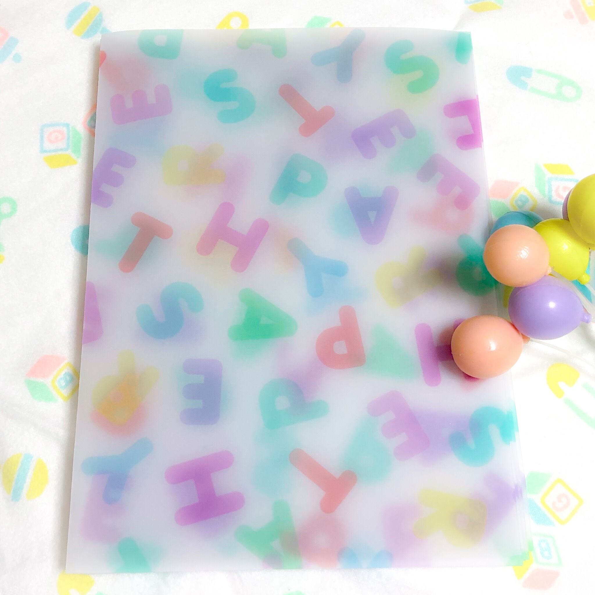 HAPPY EASTERとゆうアルファベットをちりばめた柄をトレーシングペーパーのギフトバッグにしました(^。^)